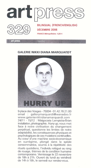 ArtPress n°329, décembre 2006, “Hurry Up”