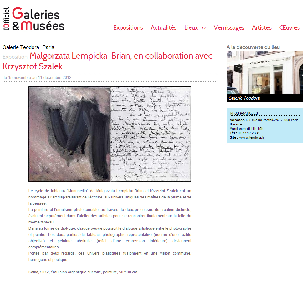 l'Officiel des Spectacles, mars 2012, „Transgressions: Malgorzata Lempicka-Brian."